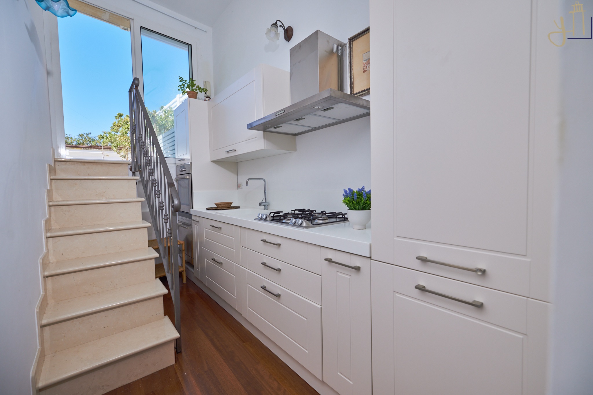 La casa si sviluppa su due livelli; al primo piano sette vani con servizi offrono comfort e funzionalità. Ma il vero gioiello è la balconata: un angolo di paradiso sospeso tra cielo e mare , dove il panorama si fonde con l’orizzonte.