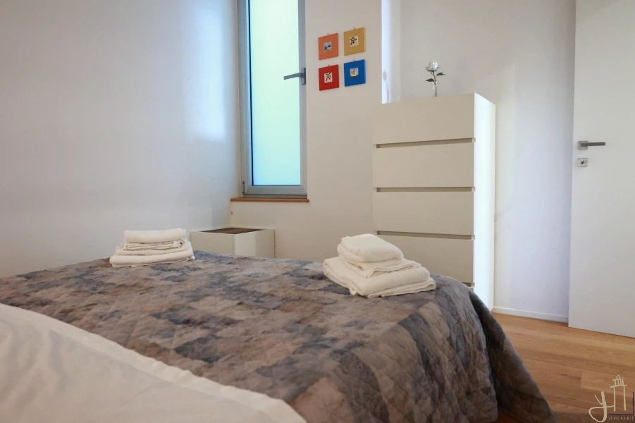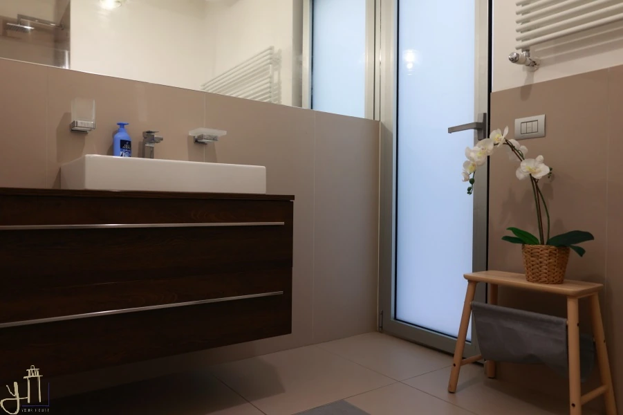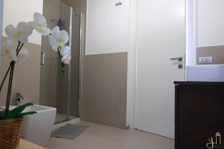 La camera da letto, avvolta in toni morbidi che invita al riposo, il bagno moderno e spazioso e la lavanderia aggiunge praticità senza intaccare l’armonia degli spazi.